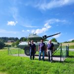 Po obisku muzeja smo se odpeljali v Vrhniko, od koder smo po obilnem kosilo krenili proti Medvedjeku. Ob zgledno urejenem spominskem obeležju smo pripravili učno uro o dogodku, ki je  je imel pomembno vlogo  pri osamosvajanju Slovenije. Medvedjek je rahel klanec na cesti M-1 pri vasi Veliki Gaber, med Trebnjem in Ivančno Gorico. To je bila zadnja barikada na ozemlju Dolenjske pokrajine TO pred Ljubljano. Enote TO so na Medvedjeku ustavile kolono JA. Barikado je branilo 504 pripadnikov TO. Kljub trem letalskim napadom JA, so enote TO uspešno obranile barikado in prisilile kolono JA k umiku. Poleg šestih ranjenih pripadnikov TO je bilo v letalskih napadih ubitih sedem civilistov, voznikov tovornjakov, ki so bili ob svojih vozilih v barikadi, ter Anton Kotar, gospodar bombardirane in mitraljirane kmetije ob barikadi.